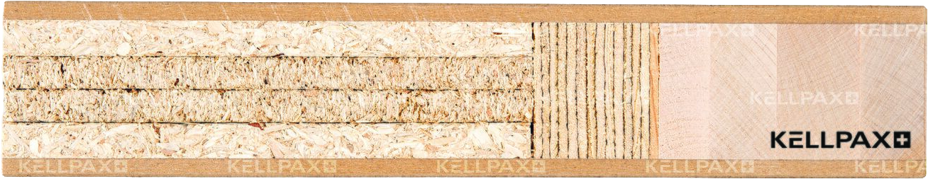 Die Mittellage dieses Rohlings besteht aus einer stranggepressten Spanplatte sowie einem mehrlagigen Kombinationsaufbau für erhöhte Schalldämmung und einem verstärkten Konstruktionsaufbau EI30. Diese ist beidseitig mit HP-Deck und wahlweise mit Klimadeck abgesperrt. Der Rohling wird umlaufend mit Einleimern aus europäischer Birke umfasst: Seitlich beträgt die Kantenbreite 50 mm, oben und unten jeweils 85 mm. Somit ist der Rohling seitlich um je 10 mm, oben und unten um je 50 mm kürzbar.