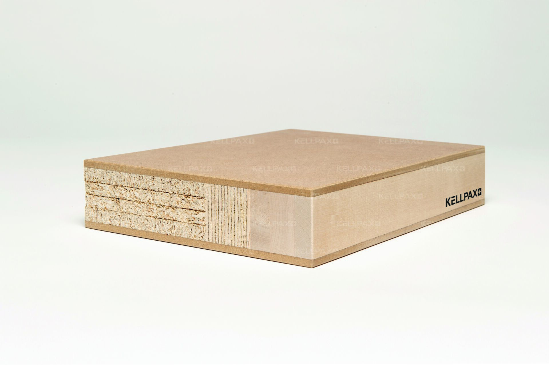 Mittellage stranggepresste Spanplatte, mehrlagiger Kombinationsaufbau für erhöhte Schalldämmung, verstärkter Konstruktionsaufbau für EI30. Beidseitig abgesperrt mit Hartplattendeck, wahlweise mit Klimadeck. 4-seitig Kanten aus Birke(europäische Herkunft) als Einleimer.